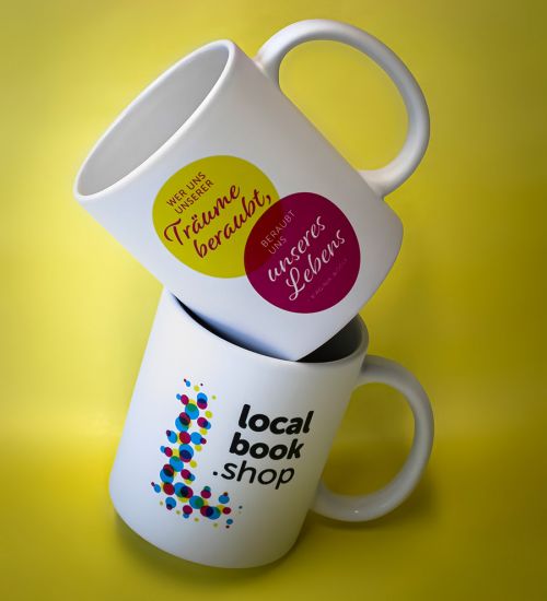Beide Tassen sind die ersten Stücke der localbook.shop-Kollektion und ein toller Hingucker in Matt-Weiß.